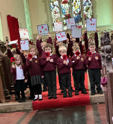On the 11/11/2025 the children marked Remembrance Day with a church service they had helped put together. They sang songs, produced poppy artwork and wrote some moving poems. At the end of the service, they placed a wreath on the War Memorial in the church and read out a list of all those who had fallen in the World Wars. After the service, the 'Friends' held a cake sale in aid of the Royal British Legion. We raised £62.20 from the sale of poppies and cakes.